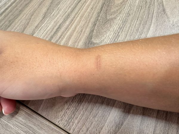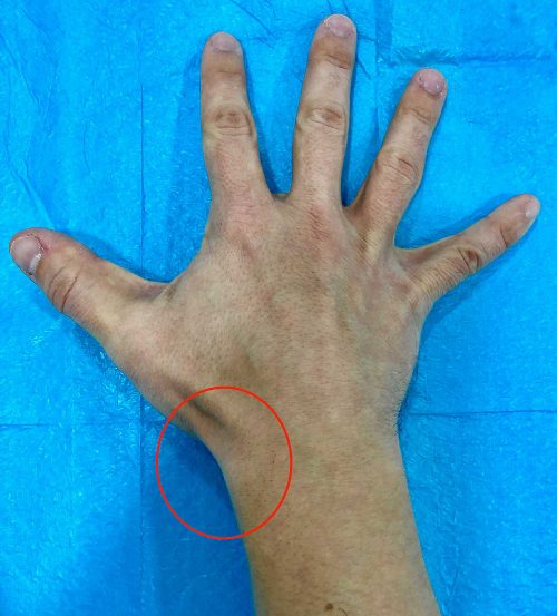 Cicatriz típica para tratamento cirúrgico da tendinite de Quervain